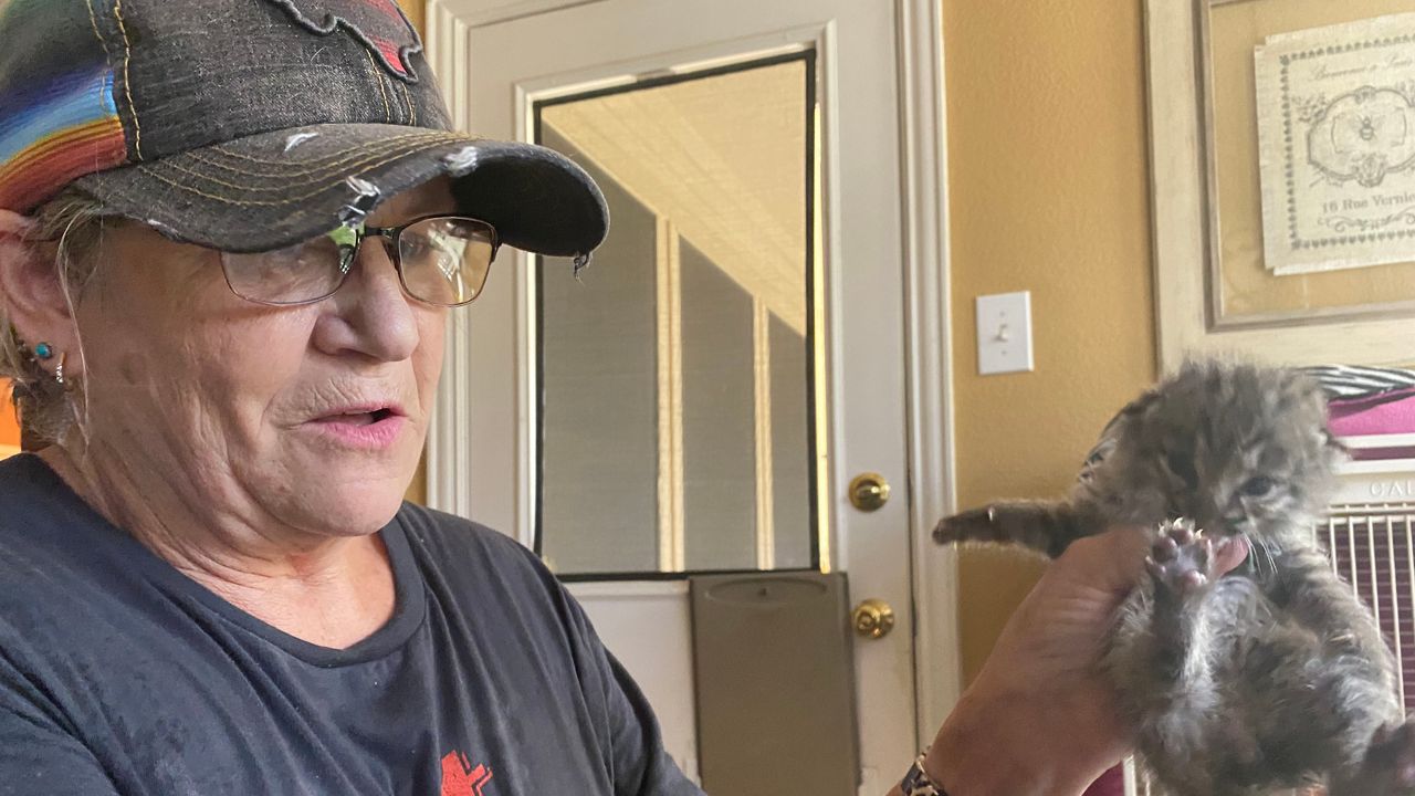 Donna Robinson with Squeezle Farms gets ready to feed a found baby bobcat. (Spectrum News 1/Chris Grisby)